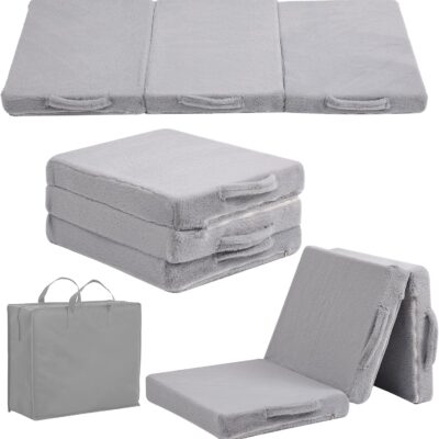 YOTATING Foldable Floor Mattress for Kids, Toddler Folding Futon Mattress, Kids Trifold Sofa Bed Convertible Children Portable Sofa with Storage Bag for Girls and Boys, Plush Grey