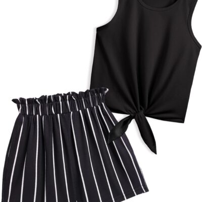 Arshiner Girls Tank Tops with Shorts Set Kids Summer Clothing Sets Casual Fashion Sleeveless T-shirts Outfits for Girls