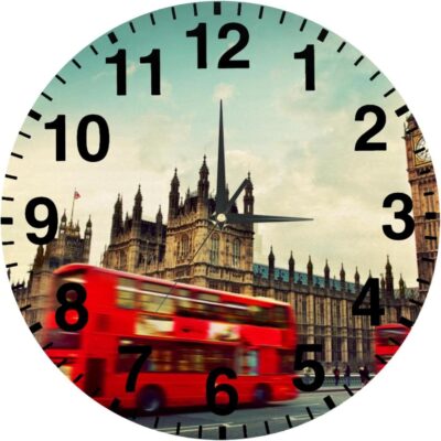 London the UK Red Bus in Motion and Big Ben Wall Clock 10 Inch Non-Ticking Round Clocks Silent Battery Operated Decro Clock for Kitchen Living Room Bathroom Bedroom Office