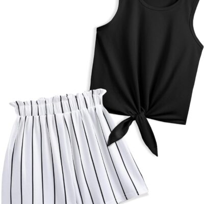 Arshiner Girls Tank Tops with Shorts Set Kids Summer Clothing Sets Casual Fashion Sleeveless T-shirts Outfits for Girls