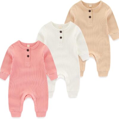 MAMIMAKA Newborn Baby Romper Cotton Footless Pajamas Baby Grow Jumpsuit Sleep and Play for 0-24 Months,Pack of 3