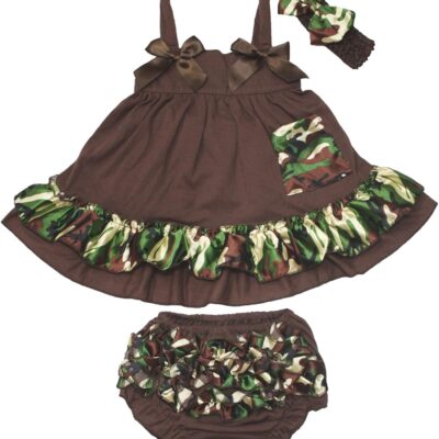 Brown Camouflage Swing Top Bloomer Pant Outfit Set Baby Girl Clothing Nb-24m