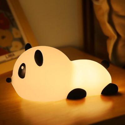 SALUOKE Panda Night Light Kids 7-Color: Rechargeable Silicone Squishy Nightlight, 30Min Timed Touch Night Lamp, Cute Wireless Baby Light, Nursery Decor Bedroom Lampe – for Toddler & Children