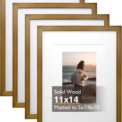 KINLINK 28×36 Picture Frames Brown – Wood Frames with Acrylic Plexiglass for Pictures 13×18/20×25 with Mat or 28×36 without Mat, Tabletop and Wall Mounting Display, Set of 4