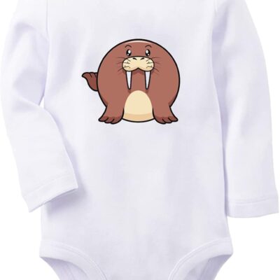 iDzn Little Baby Cute Romper Baby Bodysuit Newborn Jumpsuits Infant Kids Cotton Clothes Animal Walrus Graphic Long One-Piece Outfits