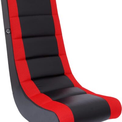 The Crew Furniture Classic Video Rocker Floor Gaming Chair, Kids and Teens, Racing Stripe PU Faux Leather & Polyester Mesh, Black/Red