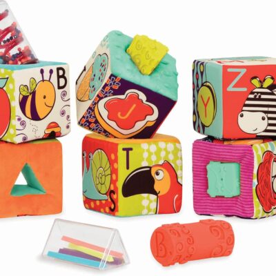 B. Toys – ABC Block Party Baby Blocks – Soft Fabric Building Blocks for Toddlers – Educational Alphabet Blocks with 6 Textured Toy Blocks & 5 Shapes – Grab & Stack Blocks – Bpa Free
