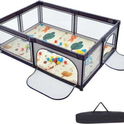 Maxmass Large Baby Playpen, Toddlers Activity Center Play Yard with Double-Sided Baby Mat, 50 Ocean Balls, Breathable Mesh & Zipper Door, Infant Play Pen Fence for 0-3 Years Old (Dark Grey)