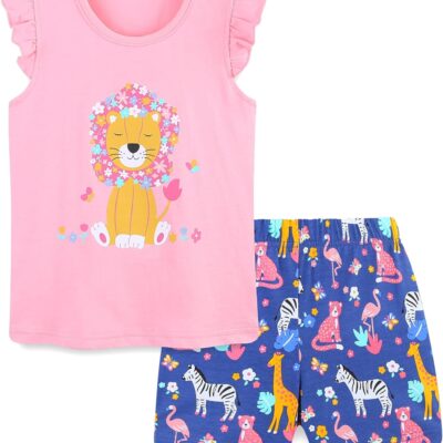 TCWWBB Toddler Girls Summer Short Outfits Clothes Set Kids Unicorn Bunny Animal Print Short Sleeve Cotton T-Shirt Dresses Tops and Shorts 2 Piece Crewneck Sleeveless Clothing Set Age 1-7 Years Old
