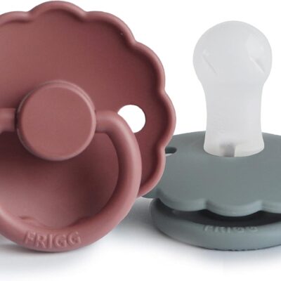 FRIGG Daisy Silicone Pacifier Pack of 2 | Silicone Soother Dummy | BPA-Free | Made in Denmark | Symmetrical Cherry Shaped Nipple (Aurora/Croissant, Size 1 (0-6 Months))