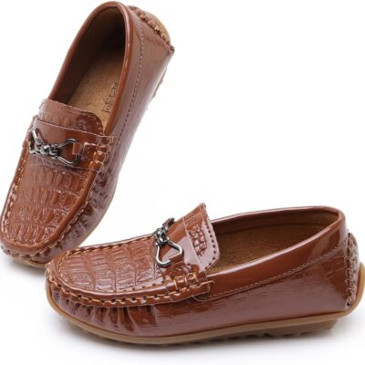 RVROVIC Kids Girls Boys Slip-on Loafers Oxford PU Leather Flats Shoes Casual Moccasin Shoes for Toddler Kid