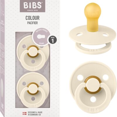 BIBS Colour Soother 2-Pack, BPA Free Dummy Pacifier, Round Nipple. Natural Rubber Latex, Made in Denmark, Size 1 (0-6 Months), Ivory