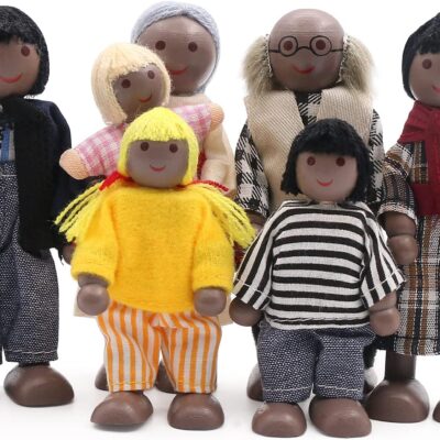 SumDirect Sets of 7 People Wooden Family Doll Toys, Lovely Happy Family Dolls Playset Doll House Accessories for Doll House Kids Children Toy (style 4)