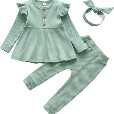 Derouetkia Infant Baby Girl Clothes Toddler Girl Ruffle Tops Long Sleeve Pants with Headband Outfit Set