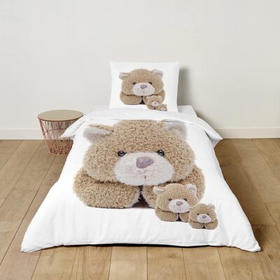 FANSU Kids Boys Girls Duvet Cover 2 Piece Bedding Set, Super cute plush Bear Printing Children Quilt Cover & Pillow Set for Nursery Toddler Cot Single Size Bed (Teddy Bear,120x150cm+40x60cm)