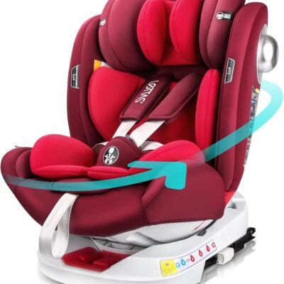 LETTAS 360 Rotation Baby Car Seat with Isofix Group 0+1/2/3 (0-36 kg, 0-12 Years) Maximum Recline 165° for Rear Facing, SIPS