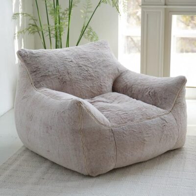 Bean Bag Chair Plush Animal Bean Bag Cover No Filler Soft Plush Fur Recliner Animal Pattern Fur Single Chair Kids Adults Beanbag Chair Lazy Armchair Couch Floor Seating Living(Lotus Gray)