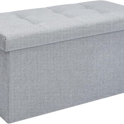 Holdfiturn Folding Velvet Ottoman Storage Bench Footrest Stool Seat Toy Chest Storage Box with Lid Long Shoes Bench Footstool for Living Room Grey