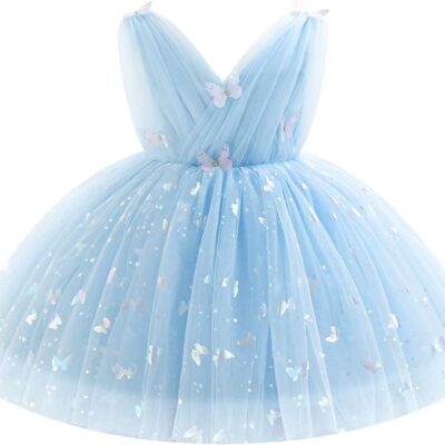 Kid Baby Girls Butterfly Birthday Dress Sleeveless V Neck Princess Shiny Ruffle Tulle Tutu Elegant Formal Pageant Wedding Party Dress