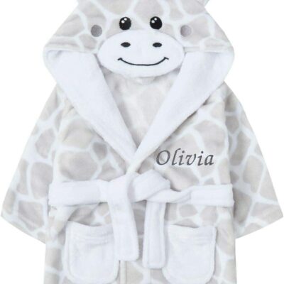 Baby Girl Boy Personalised Dressing Gown Bathrobe Hooded Elephant Duck Giraffe Animal (18-24 Months, Giraffe)