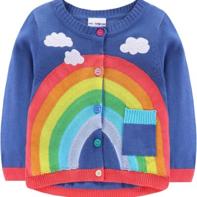Mud Kingdom Girls Cardigan Sweater Botton Down Jacket Knitted Outerwear Rainbow and Clouds Pattern