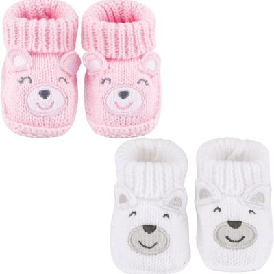 LACOFIA 2 Pairs Newborn Knitted Booties Soft Baby Boys Girls Bootees 0-3 Months