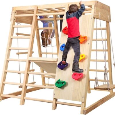 8-in-1 Jungle Gym for Kids, Toddler Net & Rock Climbing Toys with Slide Swing Horizontal Bars Rope Ladder Drawing Board Wooden Indoor Playground Montessori Climber Playset Birthday Gift